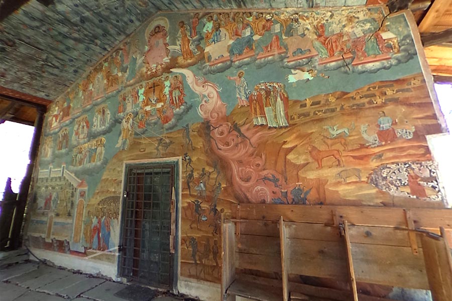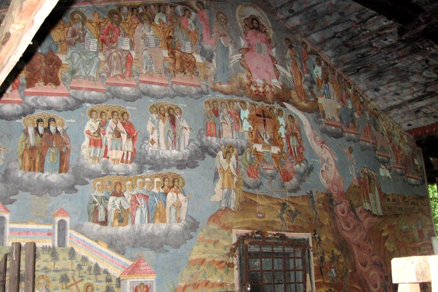 Besonders eindrucksvoll ist die komplexe, figurenreiche Komposition des „Jüngsten Gerichts“, die sich über die gesamte Westwand im Vorraum erstreckt. Bemerkenswert sind auch die Porträts des Gründers, des Einsiedlers Sebastian und des Bischofs Seraphim, die sich links neben dem Eingang an der Westwand im Kirchenschiff befinden.