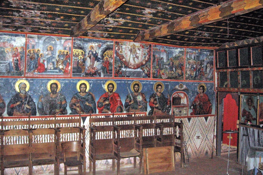 Die Beteiligung von Petre Filipovich-Garkata ist fraglich. Die 1846 fertiggestellten Fresken sind das Werk zahlreicher Meister aus Bansko, Samokov und Razlog, darunter die berühmten Brüder Zahari Zograf und Dimitar Zograf. Die Kirche beherbergt außerdem zahlreiche wertvolle Ikonen aus dem 14. bis 19. Jahrhundert. Die Säulenhallen im Innenhof weisen mit ihrer Streifenmalerei und den Kuppeln mamlukische Einflüsse auf, die nach der Eroberung Ägyptens im Osmanischen Reich immer beliebter wurden.