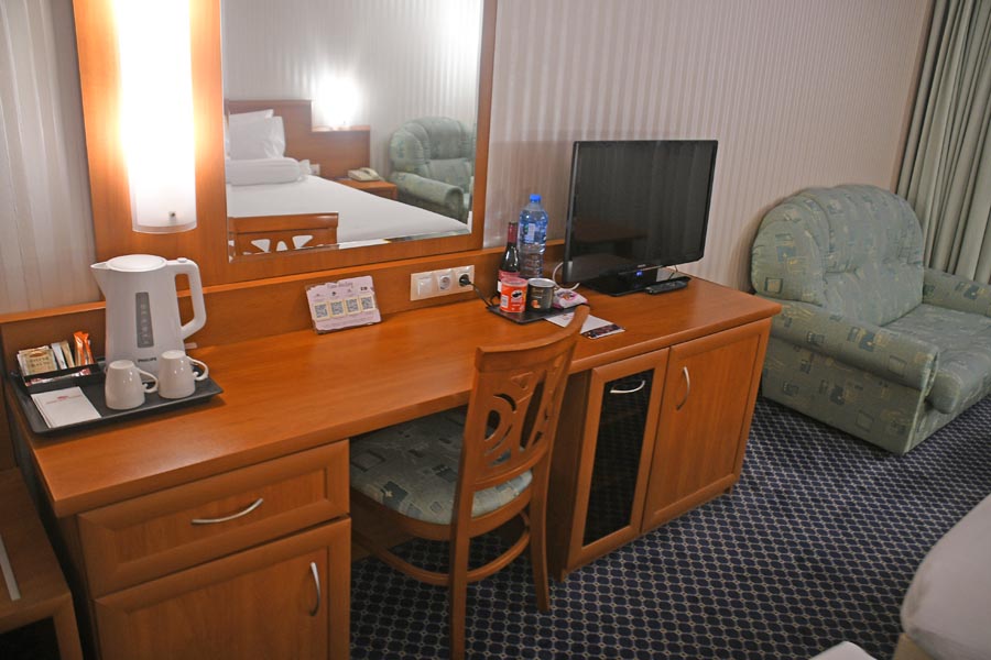 Nun - wir wollten gegen 20:40 Uhr ein Glas Wein trinken - im Restaurant sagte der Kellner uns, dass bereits Ausschlankschluss ist. Auch die Lobbybar war nicht besetzt. So sind wir zähneknirschend in unser Zimmer 516 gegangen und haben bei einer im Weinfachgeschäft gekauften guten Flasche bulgarischen Wein den Abend ausklingen lassen.