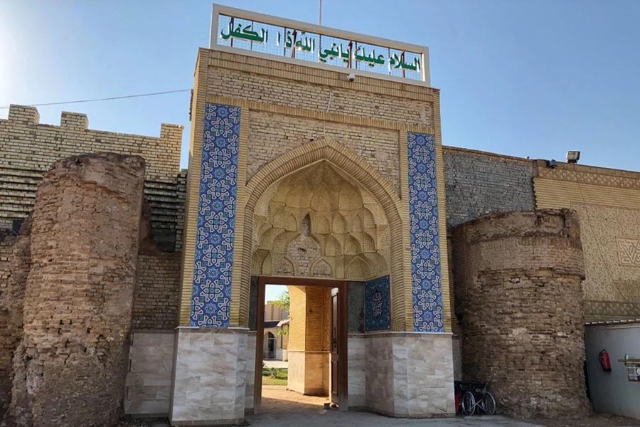 Der Komplex war ursprünglich ein jüdischer Pilgerort und enthielt das im 7. Jahrhundert n. Chr. erbaute Grab des Propheten Ezechiel. Die Zwölfer-Schiiten glauben jedoch, dass dieser Ort auf einen von Abraham erbauten Schrein zurückgeht, wie die Beschreibung des Mahdi durch Muhammad al-Jawad, den neunten Imam, nahelegt. Im Jahr 1316 n. Chr. erwarb der Ilchan Öljaitü das Vormundschaftsrecht über das Grabmal, und sein Sohn Abu Sa'id Bahadur Khan ließ die Moschee vollständig wiederaufbauen. Seitdem wurde der Ort restauriert und zu einer islamischen Kultstätte ausgebaut. Das markante Minarett und die Moschee wurden in derselben Zeit errichtet.