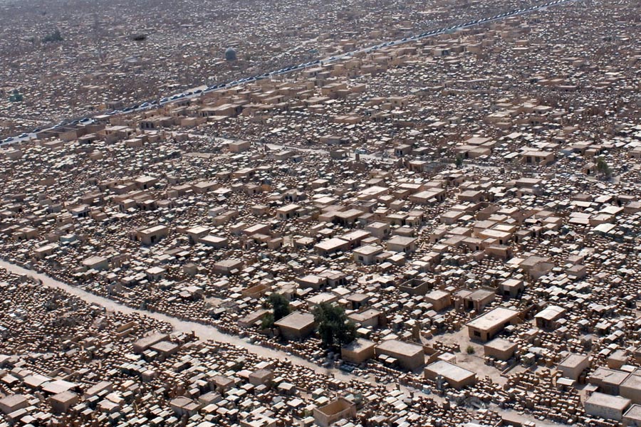 Der Friedhof liegt in der Nähe des Schreins von Ali ibn Abi Talib, dem vierten sunnitischen Kalifen und ersten schiitischen Imam. Viele Schiiten im Irak wünschen sich daher, auf diesem Friedhof bestattet zu werden. Dank verbesserter Transportmöglichkeiten werden Schiiten aus aller Welt dort beigesetzt oder möchten dort beerdigt werden. Moderne Bestattungen finden in Gemeinschaftsgräbern statt.