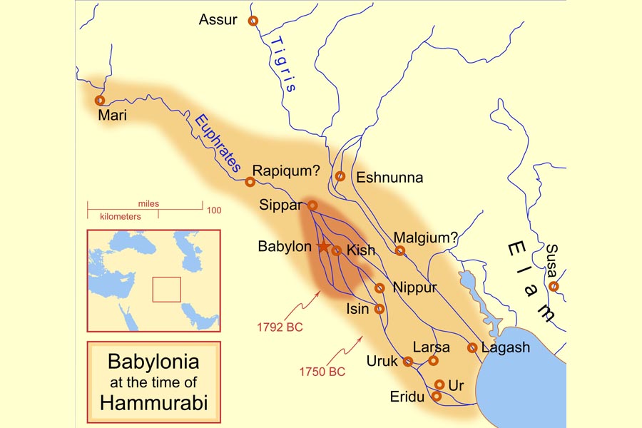 Hammurabi (ca. 1810 – ca. 1750 v. Chr., auch Hammurapi geschrieben) war der sechste amoritische König des Altbabylonischen Reiches und regierte von ca. 1792 bis ca. 1750 v. Chr. Sein Vorgänger war Sin-Muballit, der aus gesundheitlichen Gründen abdankte. Während seiner Herrschaft eroberte er die Stadtstaaten Larsa, Eschnunna und Mari. Er entthronte Isme-Dagan I., den König von Assyrien, und zwang dessen Sohn Mut-Aschkur zur Tributzahlung, wodurch fast ganz Mesopotamien unter babylonische Herrschaft geriet.