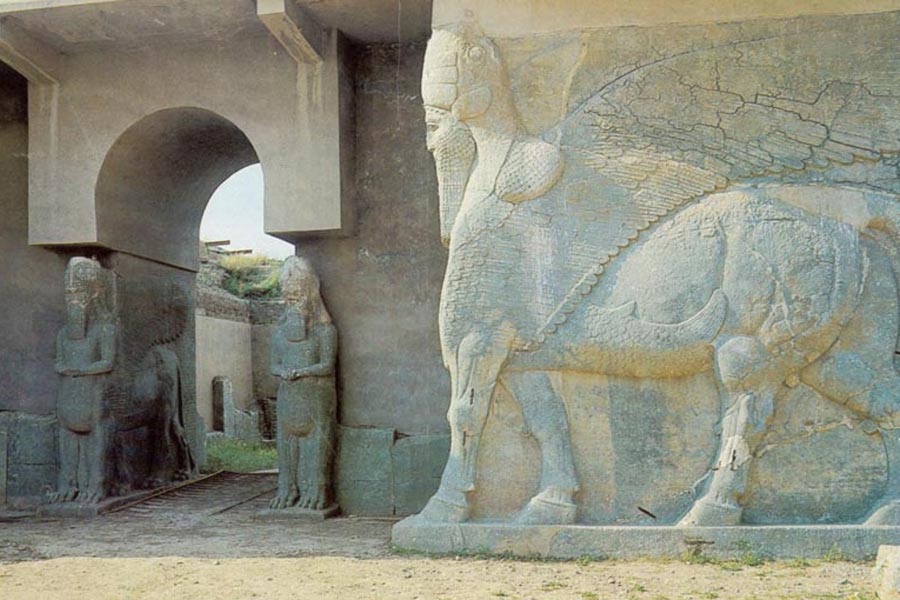 Nimrud / ܢܢܡܪܕ / النمرود ist eine antike assyrische Stadt (ursprünglicher assyrischer Name Kalḫu, biblischer Name Calah) im Irak, 30 Kilometer südlich der Stadt Mosul und 5 Kilometer südlich des Dorfes Selamiyah السلامية, in der Ninive-Ebene in Obermesopotamien und wurde im Jahr 2000 auf die vorläufige Liste des UNESCO-Welterbe gesetzt. Sie war zwischen etwa 1350 v. Chr. und 610 v. Chr. eine bedeutende assyrische Stadt. Die Stadt liegt strategisch günstig 10 Kilometer nördlich der Mündung des Tigris in seinen Nebenfluss, den Großen Zab. Die Stadt umfasste eine Fläche von 360 Hektar. Die Ruinen der Stadt wurden im Umkreis von einem Kilometer des heutigen assyrischen Dorfes Noomanea im irakischen Gouvernement Ninive gefunden.