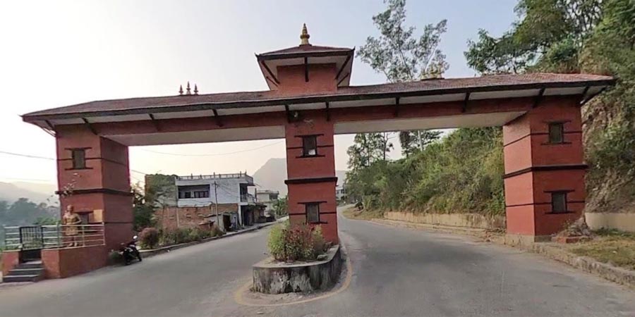Unmittelbar nach der Aanbu Khaireni Bridge / आँबु खैरेनी पूल passierten wir as Gorkha Gate in Richtung Gorkha.
