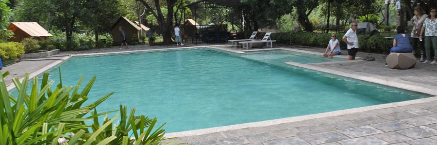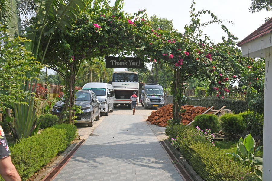 Die erste Rast von 20 Minuten erfolgte in Sarsawati Hotel & Guest House bei Aanbu Khaireninach nach etwa 1,5 Fahrstunden. Die Pausen wurden überwiegend für den Gang zu den Toiletten benutzt, die unser Reiseleiter auf Rücksicht des Alters der Gruppe regelmäßig einplante. Einige Mireisende bedauernten, dass es keine Zeit gab, sich in dem kleinen Pool abzukühlen.