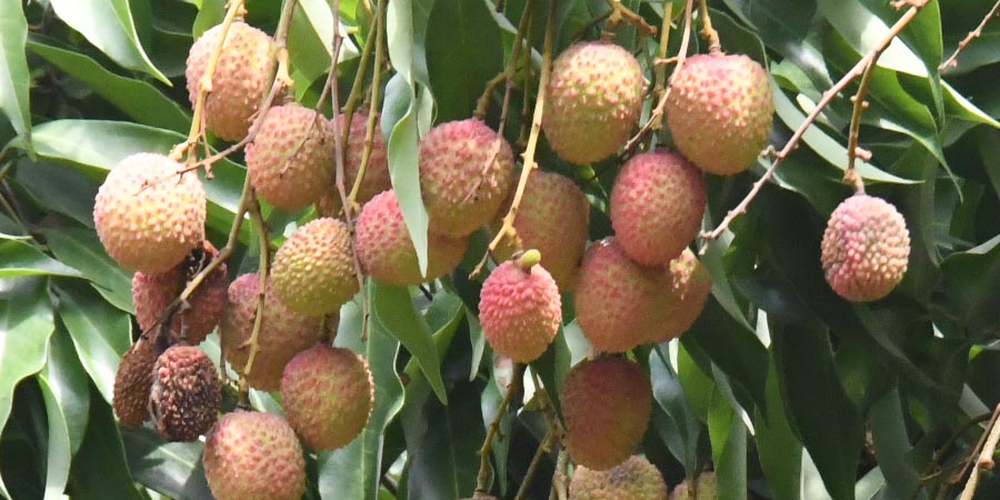 Wesentlich interessaner war der alte und sehr große Litschibaum (Litchi chinensis) - ein tropischer, immergrüner Baum aus der Familie der Seifenbaumgewächse. Er ist bekannt für seine süßen, rosaroten Früchte, die als Litschi oder Lychee bekannt sind und in unseren Breiten meist als Kübelpflanze gehalten werden, da er nicht frosthart ist und viel Wärme, Licht sowie eine hohe Luftfeuchtigkeit benötigt, wobei die Fruchtbildung in Gefäßen schwierig ist.