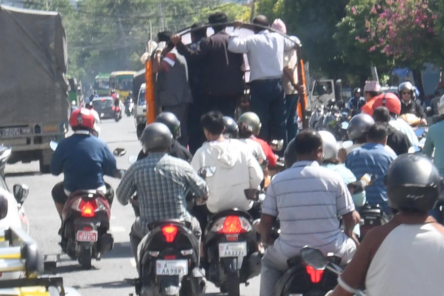 Gegen 9 Uhr gingen wir Richtung Hauptstraße am See. In die Stadt fuhren wir heute mit den Linienbus, der gegen 9:15 Uhr an der Haltestelle eintraf. Wir fuhren etwa 7,5 Kilometer in nördlicher Richtung über der Nayabazar Rd, bis wir wieder ausstiegen.