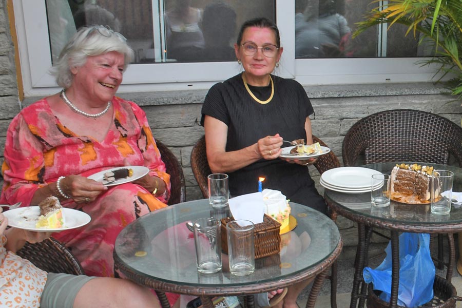 So suchten wir beim Stadtrundgang zielgerichtet ein Geschäft, wo man eine Torte kaufen konnte. Wir wählten zwei verschiedene Torten aus und luden im Hotel das Geburtstagskind zu Tisch. Tränen standen ihr vor Freude in den Augen - eine gelungene Überraschung. So informierten wir die Mitreisenden, dass Geburtstagstorte zum Mitessen angeboten worden ist.