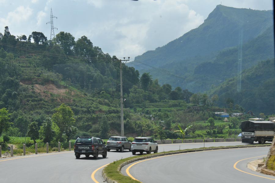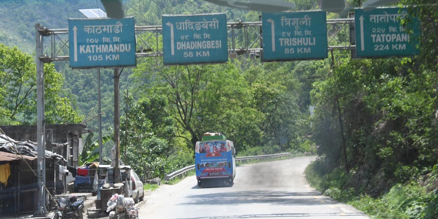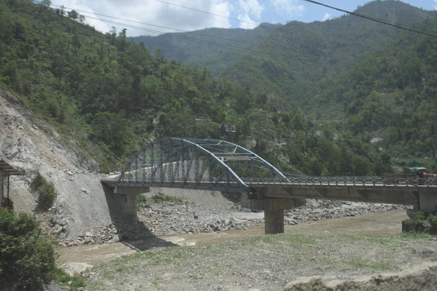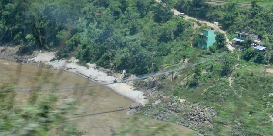 Wenige Kilometer vor der Provinz Dhading / धादिङ ließen wir links die Fishling Bhumlichok Bridge liegen - fuhren gerade aus auf der NH-17 weiter in Richtung Kathmandu.