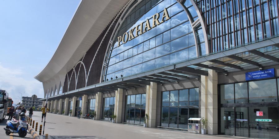 Da unser Reiseleiter wußte, dass wir sehr lange unterwegs sein werden, da ein mächtiger Stau vor Kathmandu ist. Er bot den Mitreisenden an, die Strecke auf eigene Kosten per Flugzeug zu überbrücken. Mehrere Mitreisende nutzten diese Möglichkeit, wodurch wir einen Zwischenstop am Pokhara International Airport / पोखरा अन्तर्राष्ट्रिय विमानस्थल einlegten - eine top Organisation durch unseren Reiseleiter.