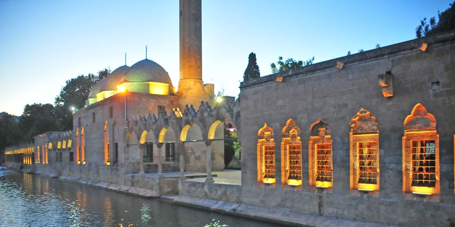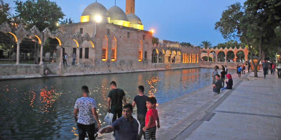 Die Balıklıgöl-Seen (Ayn-i Zeliha und Halil-Ür Rahman Gölleri) liegen südwestlich des Stadtzentrums von Şanlıurfa. Der Legende nach soll der Prophet Abraham an diesem Ort ins Feuer geworfen worden sein. Die Seen mit ihren Karpfen, die in der islamischen Welt als heilig gelten, und den sie umgebenden historischen Artefakten zählen zu den meistbesuchten Sehenswürdigkeiten Şanlıurfas.